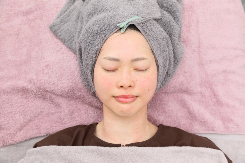 ダーマ鍼では、施術後に美容成分の浸透・鎮静を目的とした美容パックをします。時間は15分程度。