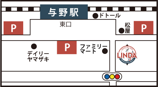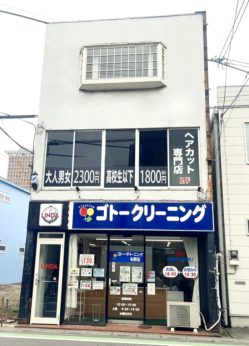 駅を降りて直進し「ピタットハウス」を右折したら間もなくすると左側に「ゴトークリーニング」があり、その2階が当店です。青と白のサインポールが目印です。 - お車でお越しの場合