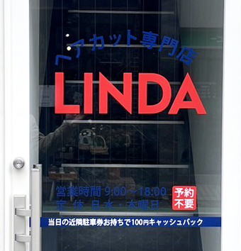 LINDA では、カット専門店の特徴である、早い・安いに「かわいい」「美しい」「かっこいい」を追加して、皆さまが笑顔になっていただける技術提供と空間作りに努めています。