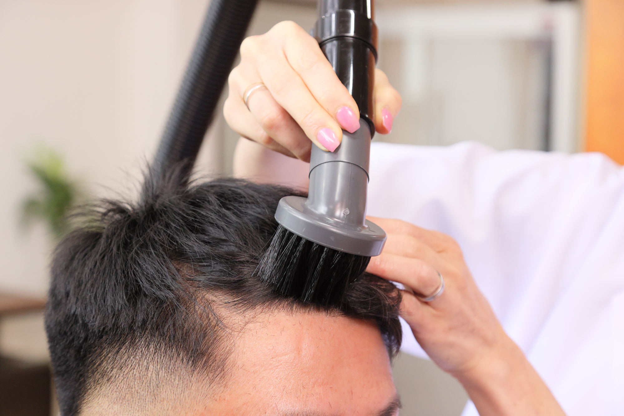 カット後、そのまま外出ができるように強力なエアウォッシャーで髪の毛を丁寧に吸い取ります。